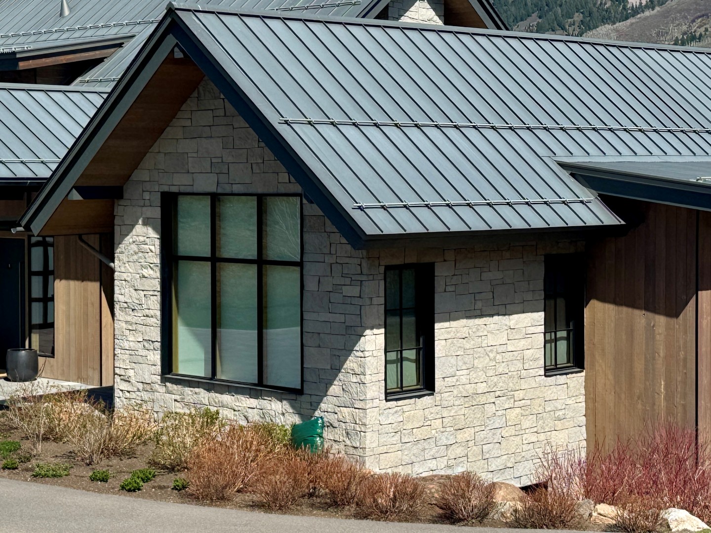 Dark gray limestone chopped into rectangular shapes.